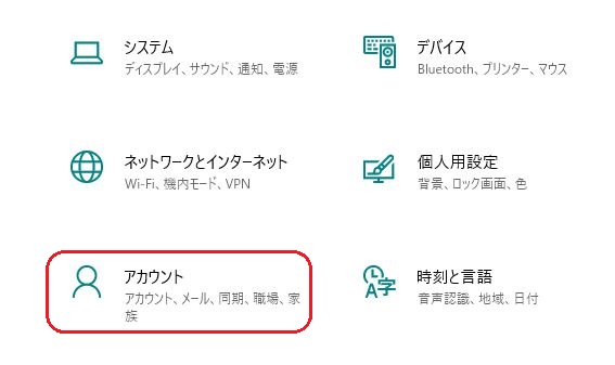 @ 設定画面を開き、アカウントを選択
