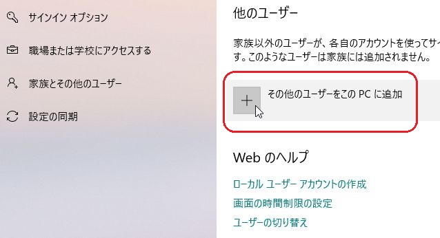 B その他のユーザーをこのPCに追加 をクリック