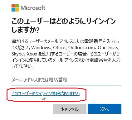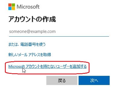 D Microsoftアカウントを持ちないユーザーを追加する をクリック